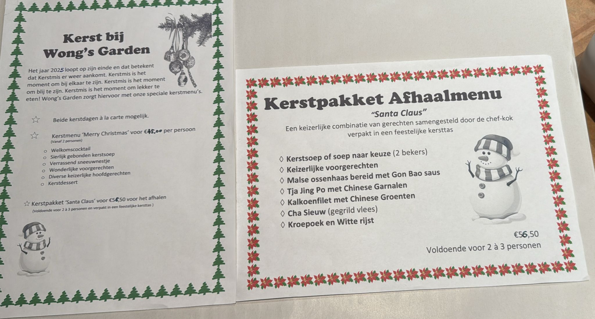 Het jaar 2025 loopt op zijn einde en dat betekent dat Kerstmis er weer aankomt. Kerstmis is het moment om bij elkaar te zijn. Kerstmis is het moment om blij te zijn. Kerstmis is het moment om lekker te eten! Wong’s Garden zorgt hiervoor met onze speciale kerstmenu’s.